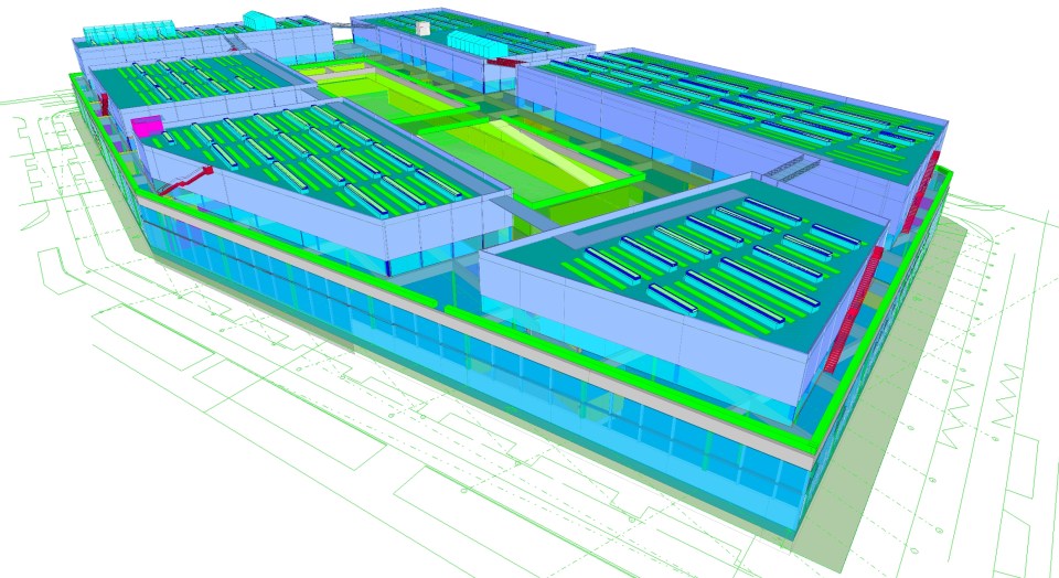 Ce projet de construction présente diverses zones ; Logistique, parking, bureaux, artisanat, industrie. Cette opération est un groupement financier avec plusieurs organismes d’investissements. Après concertation nous avons déterminé verbalement et brièvement d’un découpage du projet par grands ensembles. Après nettoyage et remise à niveaux de l’IFC j’ai donc entrepris de pré-renseigner un maximum de chose dans la maquette. J’ai de plus à créer mes zones (Planchers hauts, bas,intermédiaires) pour établir mon métré selon la méthode BMF. Certains découpages ont été redéfinit ou modifiés en cours ce qui transforme considérablement le métré. En effet la modification de la délimitation de ce découpage transforme radicalement les renseignements des éléments ainsi que la nature des planchers(mitoyenneté). Ainsi je retiendrais de cet exercice le fait qu’il soit indispensable d’avoir un plan de repérage précis du découpage du projet pour commencer le métré.